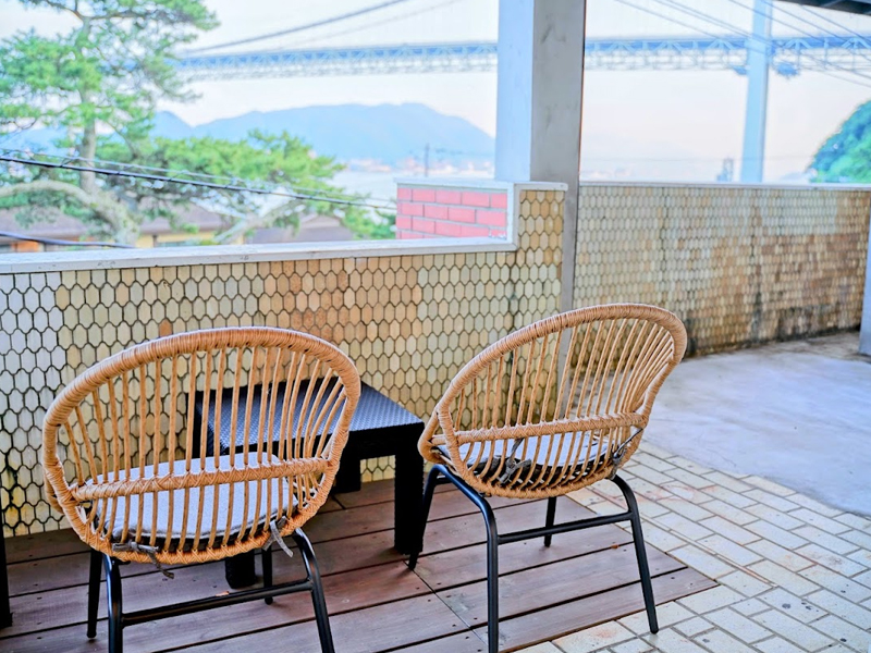 - 関門海峡を望む海側には、専有バルコニーをご用意しており、テーブルと椅子を備え付けています。