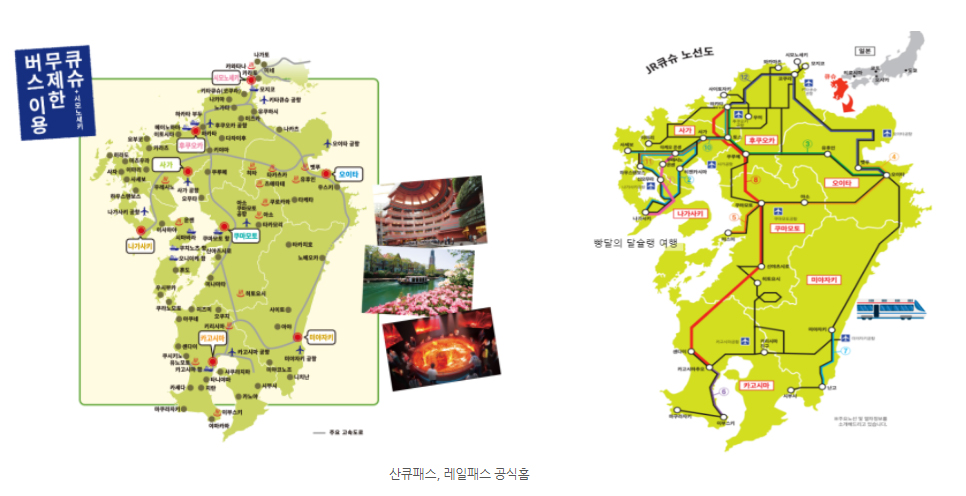 규슈 북부+시모노세키(2/3일권) 규슈 남부 3일 규슈 전역+시모노세키(3/4일권) |